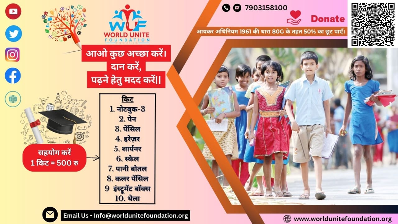 WUF is determined to strengthen our communities for the benefit of ordinary people. We are giving relentless efforts toward the overall improvement of human lives irrespective of caste, religion, or gender. Our focus is to increase the awareness of social responsibilities among the common masses. Our organization is working for the unprivileged and the marginalized section of society. Our work strives for better education with the view that everyone should be fully educated, and for this purpose, to implement various activities useful for education, to help the financially backward persons, to organize health camps, focus on the matter of water, sanitation and hygiene, response for the emergency situation, developing youth lives and sports in the communities, make ideal villages around the localities.